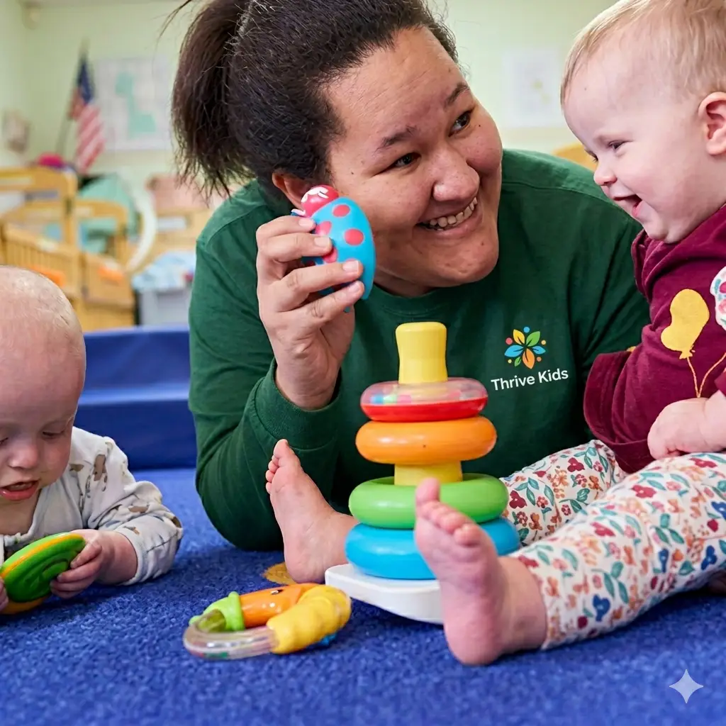 Thrive Kids Daycare provides a calm, clean environment where your baby gets one-on-one attention, consistent routines, and loving care every day. You’ll feel confident knowing your child is safe and supported.